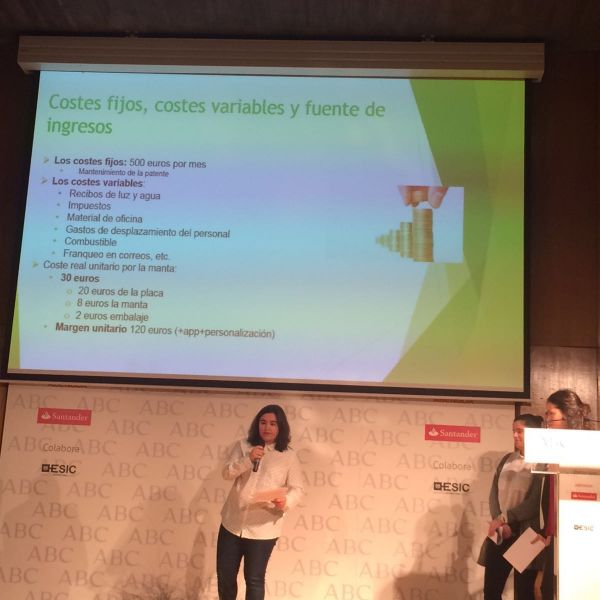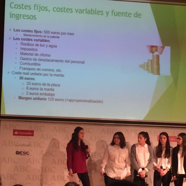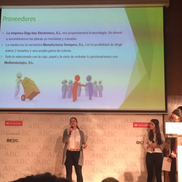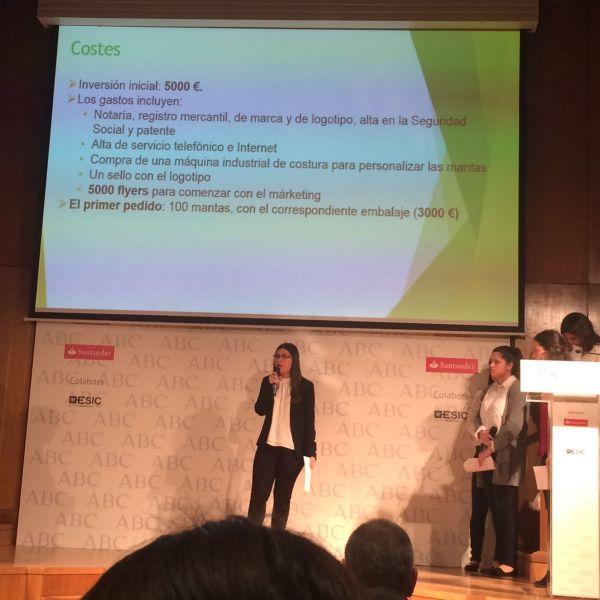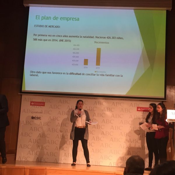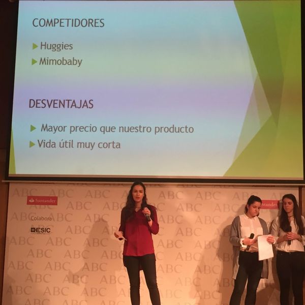 Hoy ha tenido lugar la defensa del proyecto en la Biblioteca del períodico ABC. Y lo han hecho fenomenal. Ante más de 80 personas han defendido con mucha destreza y profesionalidad el proyecto empresarial que han ideado y en el que han estado trabajando desde septiembre. El producto que piensan vender es muy original y ha gustado mucho al jurado que estaba formado por personalidades representativas de las principales empresas (ABC, Banco Santander, Abengoa...) y por otros empresarios innovadores del panorama empresarial actual.