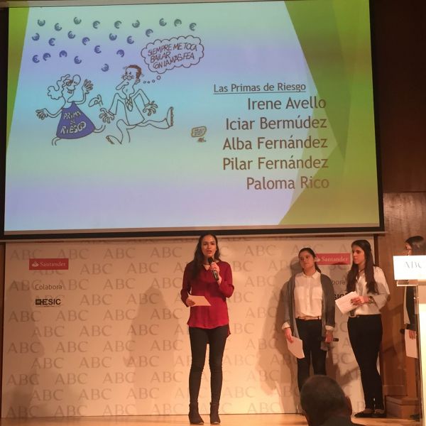 Los alumnos del grupo "Las primas de Riesgo" de 1º de bachillerato, se han clasificado para la fase final del concurso Nacional de Startinnova. Este concurso premia la innovación y el emprendimiento empresarial. Este grupo ha presentado una idea muy innovadora de negocio que tendrán que defender el próximo 2 de marzo ante un jurado formado por empresarios de reconocido prestigio y profesores de universidad, en la sede del diario ABC. Para nosotros ha sido un orgullo que forméis parte de este selecto grupo de 5 clasificados de entre todos los grupos de todos los Colegios presentados en Madrid. Enhorabuena por vuestro trabajo.