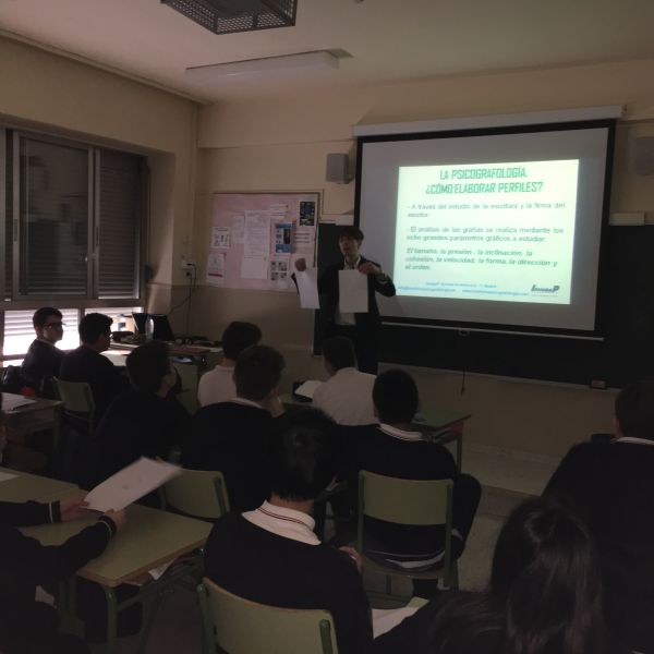 TALLER DE GRAFOLOGÍA 2 ESO: con Carlos Rodríguez Díaz, psicólogo, perito calígrafo, grafólogo y director de IPSIGRAP. Los alumnos pudieron aprender curiosidades sobre la grafología y disfrutar de un gran experto y profesional de la profesión.