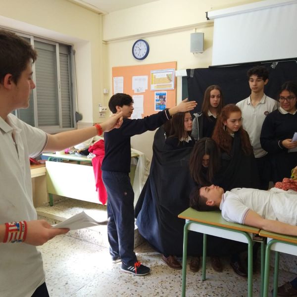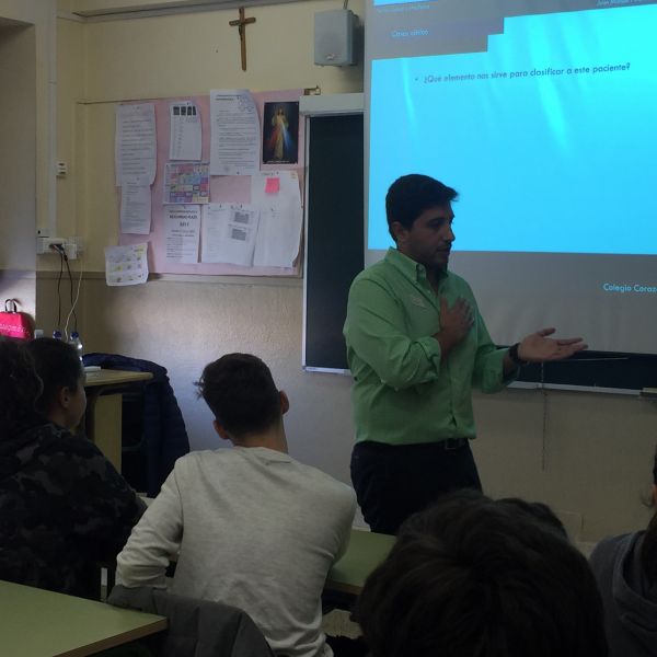 MEDICINA 1º BACH: Los alumnos de 1º de Bachillerato han asistido, durante la cuarta jornada de la Semana Temática, a un seminario sobre medicina. Ha sido impartido por el médico y ex alumno de nuestro Colegio Dr. Juan Pina Moreno. Durante esta sesión muy divertida e interactiva, los alumnos han aprendido aspectos claves en el análisis clínico, los protocolos en situaciones de urgencia, la clasificación de enfermos de urgencia, lectura del electro, tomar el pulso, toma de tensión, observación de reflejos. También las actitudes y aptitudes de un médico, prevención y salud. Finalmente los alumnos han debatido sobre vacunas.
