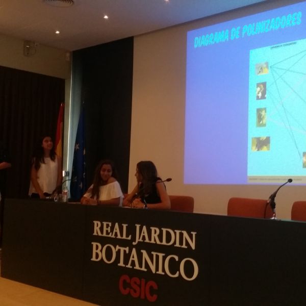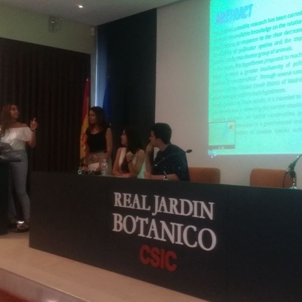 Éxito rotundo, por parte de los alumnos de la asignatura Biología y Geología de 1 de Bachiller, en el congreso científico celebrado el día 12 en el salón del Real Jardín Botánico. En un congreso dirigido por el mismo director de la institución, los alumnos presentaron su proyecto de investigación sobre la relación interespecífica existente entre polinizadores-artrópodos con las angiospermas, utilizando como recursos un poster científico y una presentación prezis. Un granito más para la ciencia.
