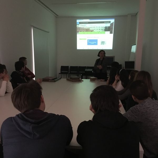 Nuestros alumnos de 1 Bachillerato han visitado esta mañana la Hemeroteca Municipal del Centro Conde Duque. Situada en un antiguo cuartel, les ha ofrecido la posibilidad de ver y manipular ediciones de periódicos y revistas desde el siglo XVIII hasta la actualidad, así como conocer los diferentes soportes de conservación de las publicaciones. La segunda parte de la visita les ha mostrado el Archivo Musical, con instrumentos de diferentes épocas y diversos medios de soporte musicales como la pianola o el gramófono.