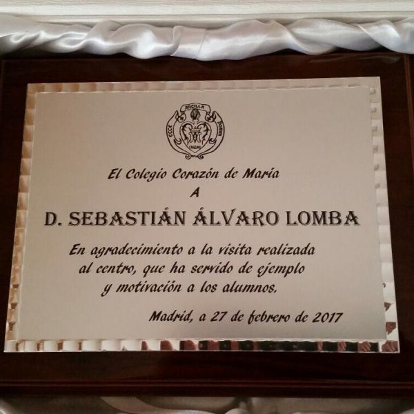 Al final del evento se le ha entregado a D. Sebastián Álvaro Lomba una placa conmemorativa en agradecimiento a la charla motivacional que ha impartido a nuestros alumnos. ¡Gracias, gracias, gracias!
