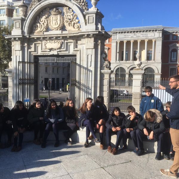 Los alumnos de 3º de ESO estuvieron viendo los Jardines del Buen Retiroy en el Museo del Prado. Allí pudieron ver en primera persona algunas de la obras del Renacimiento y el Barroco que han estudiado en clase, como las pinturas de Fra Angelico, van der Weyden, el Bosco, Tiziano, el Greco o Velázquez.