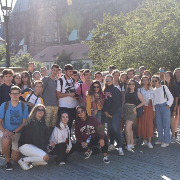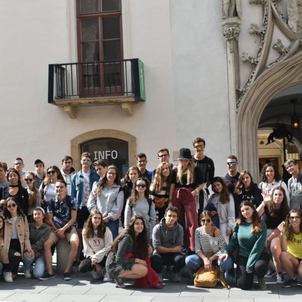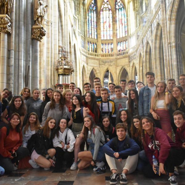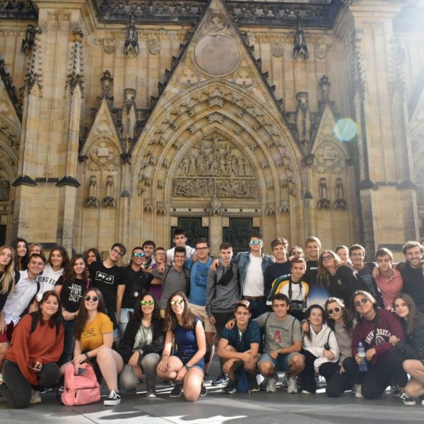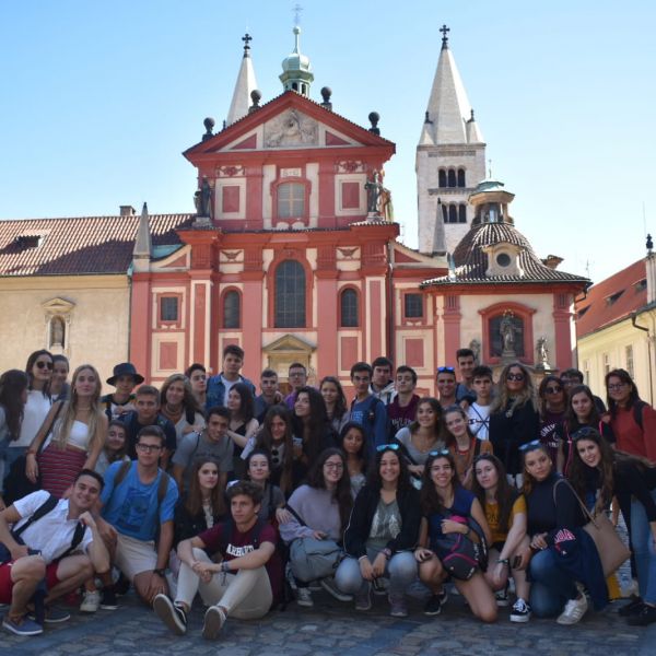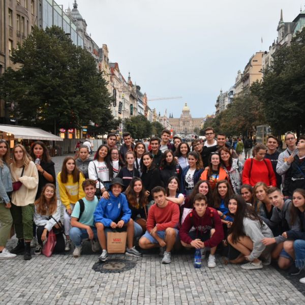 Día 1: Los alumnos de segundo de bachillerato llegan a Praga y visitan el centro histórico viejo de la ciudad.
