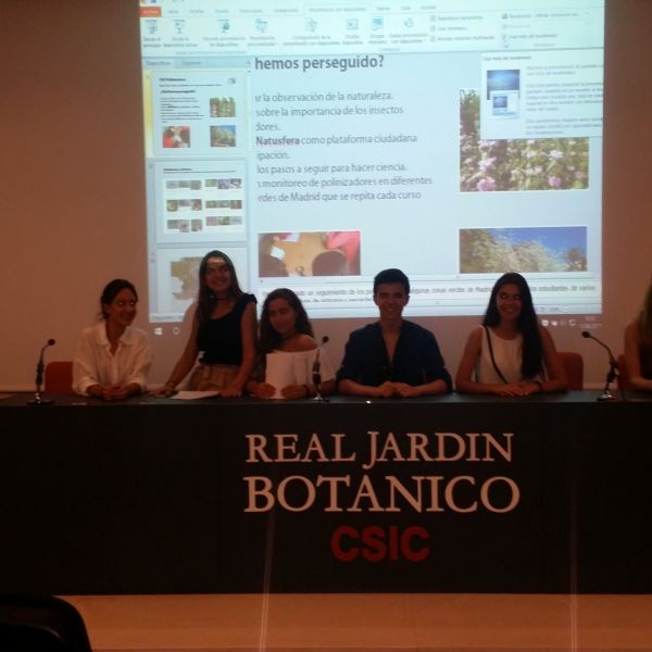 Éxito rotundo, por parte de los alumnos de la asignatura Biología y Geología de 1 de Bachiller, en el congreso científico celebrado el día 12 en el salón del Real Jardín Botánico. En un congreso dirigido por el mismo director de la institución, los alumnos presentaron su proyecto de investigación sobre la relación interespecífica existente entre polinizadores-artrópodos con las angiospermas, utilizando como recursos un poster científico y una presentación prezis. Un granito más para la ciencia.