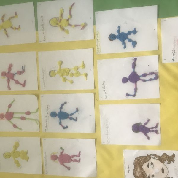 En 1° de Primaria estamos trabajando el cuerpo humano: las partes de la cara, las articulaciones... y hemos hecho varios trabajos para poner en práctica lo aprendido.fotos