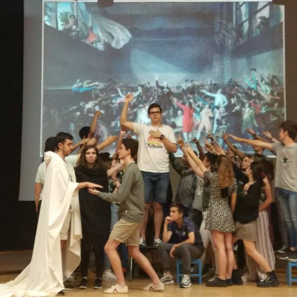Nuestros alumnos de 1º de Bachillerato han realizado un taller de Historia del Arte, representando cuadros de El Greco, Goya, Delacroix, David y Cezanne.