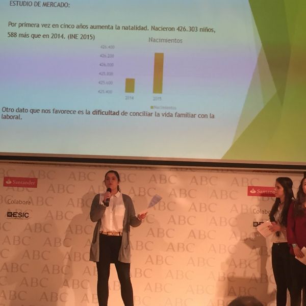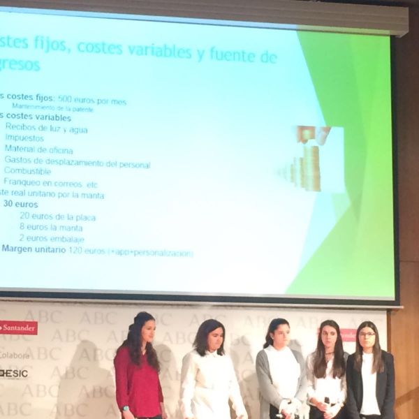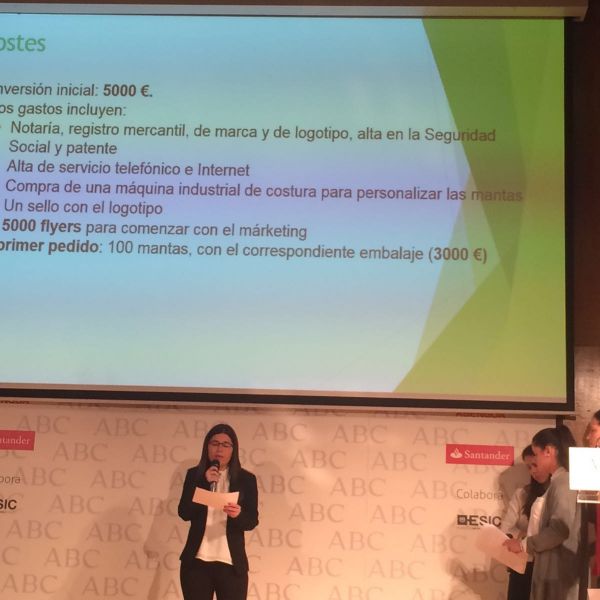 Hoy ha tenido lugar la defensa del proyecto en la Biblioteca del períodico ABC. Y lo han hecho fenomenal. Ante más de 80 personas han defendido con mucha destreza y profesionalidad el proyecto empresarial que han ideado y en el que han estado trabajando desde septiembre. El producto que piensan vender es muy original y ha gustado mucho al jurado que estaba formado por personalidades representativas de las principales empresas (ABC, Banco Santander, Abengoa...) y por otros empresarios innovadores del panorama empresarial actual.
