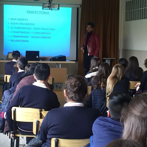 SEMINARIO DEPORTIVO: Nuestros alumnos de 3° de la ESO y 4° ESO C han asistido al seminario deportivo impartido por Ismael Gil, ex jugador del Rayo Vallecano y actual portero del Villanovense en segunda división B. Los alumnos han escuchado la experiencia de un jugador profesional como Ismael, su trayectoria desde categorías inferiores hasta ser profesional. Cómo luchar por sus sueños, y las actitudes y aptitudes que debemos tener para lograr nuestros deseos. La importancia de los estudios y del sacrificio. También la vida del deportista, salud y dieta sana.