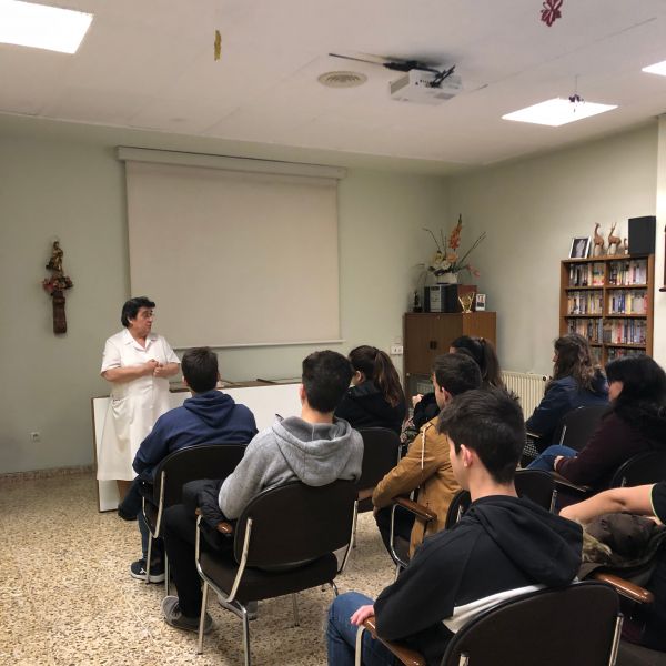 MEDICINA 1º BACH: Los alumnos de 1º de Bachillerato han asistido, durante la cuarta jornada de la Semana Temática, a un seminario sobre medicina. Ha sido impartido por el médico y ex alumno de nuestro Colegio Dr. Juan Pina Moreno. Durante esta sesión muy divertida e interactiva, los alumnos han aprendido aspectos claves en el análisis clínico, los protocolos en situaciones de urgencia, la clasificación de enfermos de urgencia, lectura del electro, tomar el pulso, toma de tensión, observación de reflejos. También las actitudes y aptitudes de un médico, prevención y salud. Finalmente los alumnos han debatido sobre vacunas.