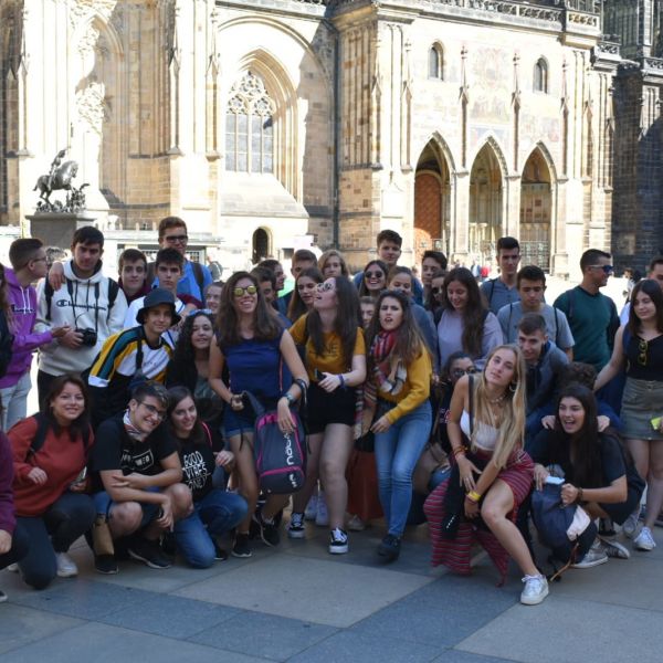 Día 1: Los alumnos de segundo de bachillerato llegan a Praga y visitan el centro histórico viejo de la ciudad.
